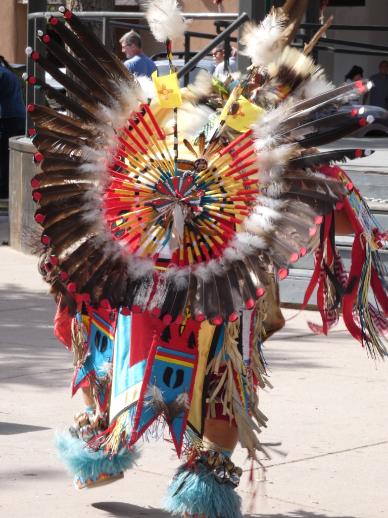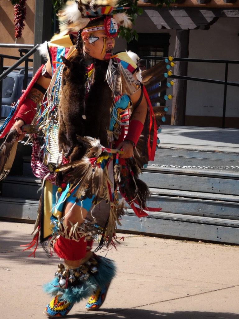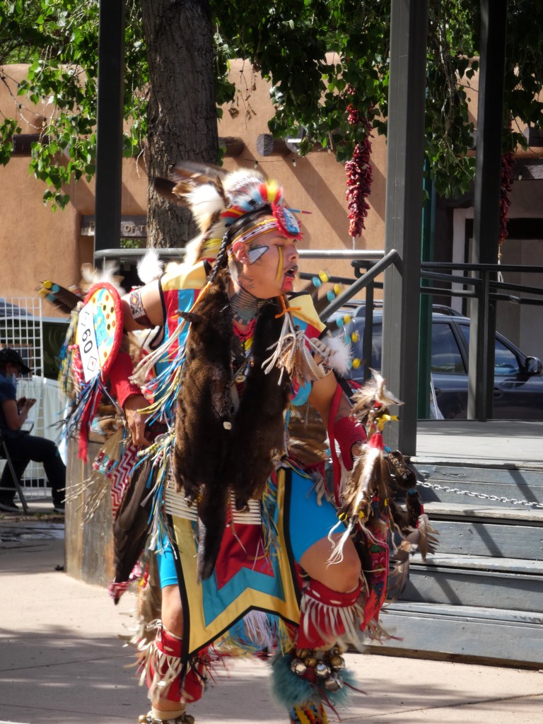 As I mentioned earlier, both cities were originally home to thriving Native people who still celebrate and continue to pass own their languages and traditions to the generations that follow. While we were in Santa Fe we had the pleasure of taking part in this beautiful culture. Here are some photos of a dance that honors warriors that have passed. It was after Memorial Day weekend and the plaza was full and I thought it was a beautiful dance to share with tourist that may never have otherwise seen anything like it.
