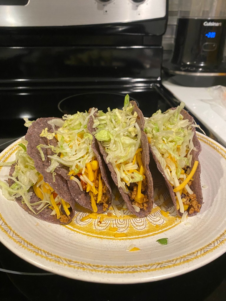 I usually serve my tacos with low fat shredded cheese, tomatoes, iceberg lettuce, and we substitute low fat Greek yogurt instead of sour cream as a healthy swap. Another healthy swap we make is using blue corn taco shells rather than the yellow. Spouts also has some great gluten free varieties as well.